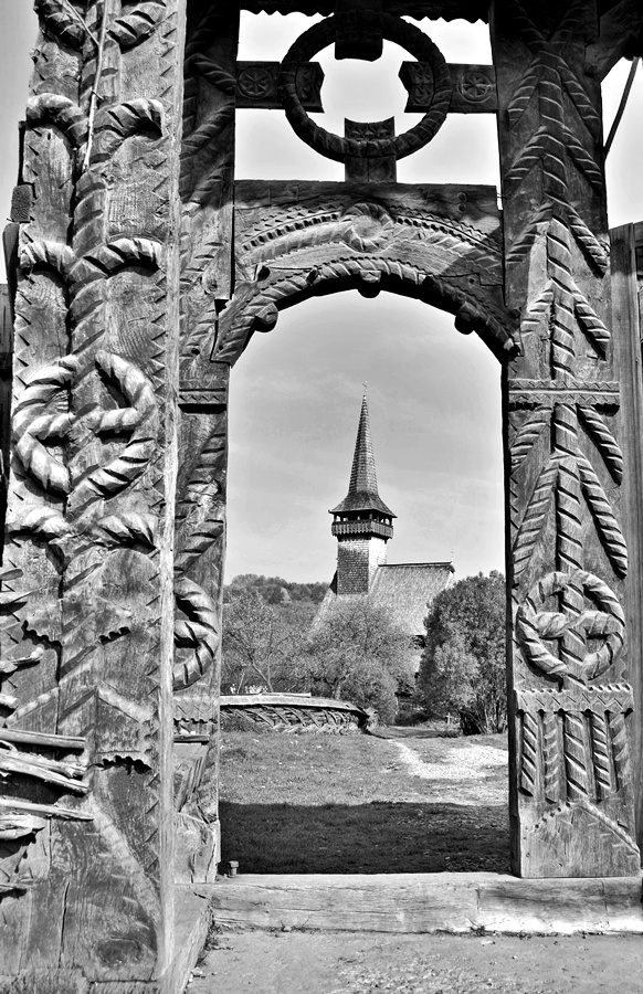 Ce poate fi mai simplu de frumos decat o poartă încrustată-n lemn deschisă ca un zâmbet luminos ce-nseamnă bucurie şi îndemn.